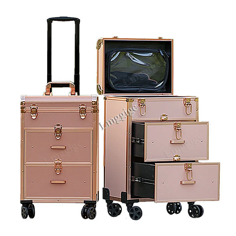 Meja rias Koper bingkai Aluminium + PVC Kasus Kosmetik, Roda alat Makeup, Kecantikan Bergulir Bagasi Tas make up Trolley| | - AliExpress
