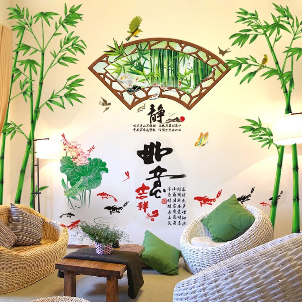 Gaya cina stiker dinding stiker, Ruang TV latar belakang dinding kamar tidur hiasan dinding, Mural 3D tiga dimensi wallpaper perekat … | Shopee Indonesia