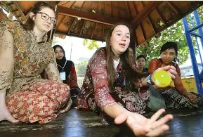26-ina-Mahasiswa-dari-Oklahoma-University-dan-Florida-University-saat-mencoba- permainan-bola-bekel | Harian Bhirawa Online