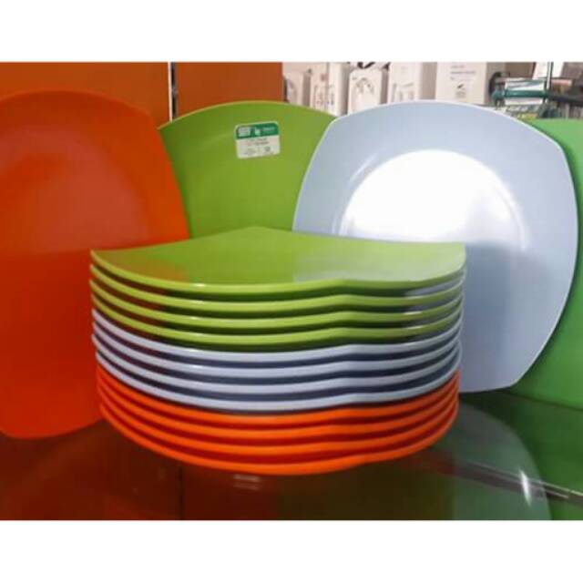 12pcs piring melamin kotak dan ceper 10 inch | Shopee Indonesia