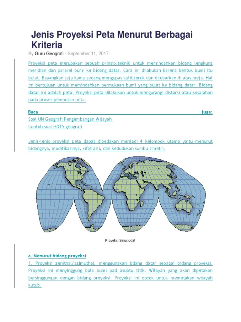 Jenis Proyeksi Peta Menurut Berbagai Kriteria | Gurugeografi.id