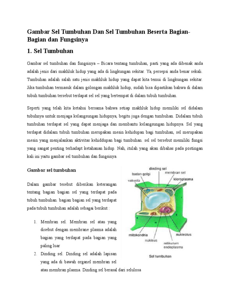 Gambar Sel Tumbuhan Dan Sel Tumbuhan Beserta Bagian