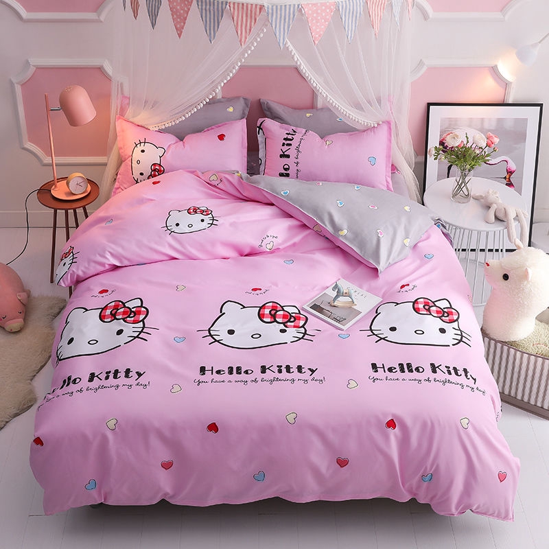 Cotton Bedding Sets Cartoon Hello Kitty 4pcs Bed Set Duvet Cover Bed Sheet Pillowcase Soft and Comfortable king queen size|sheet skin|sheet tubesheet excel - AliExpress