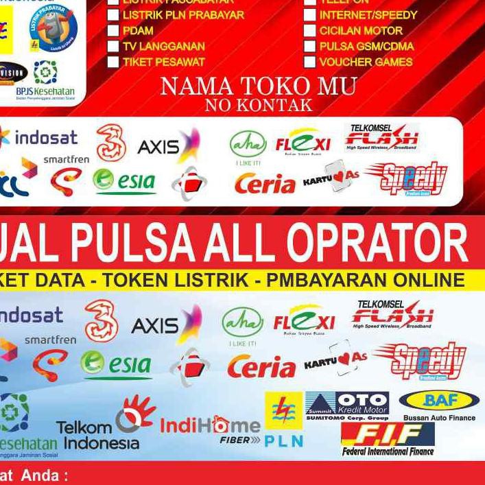 spanduk banner etalase konter pulsa / spanduk konter hp / banner konter pulsa / poster etalase konter / gambar etalase konter / logo pulsa operator / poster logo pulsa | Lazada Indonesia