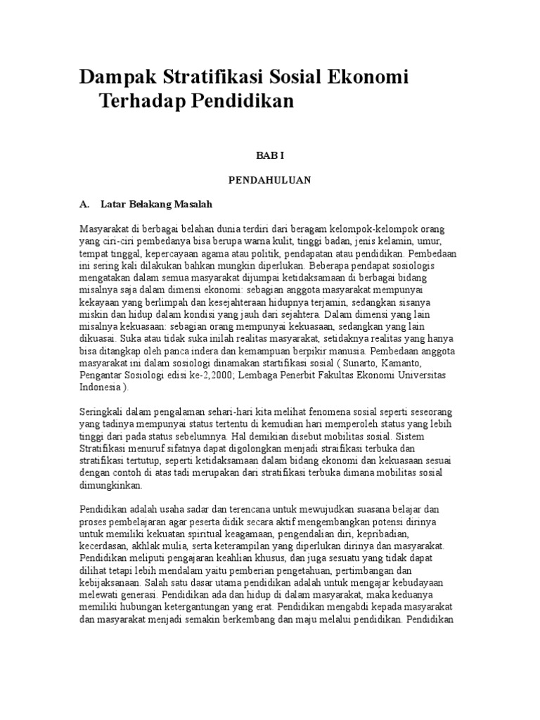 Dampak Stratifikasi Sosial Ekonomi Terhadap
