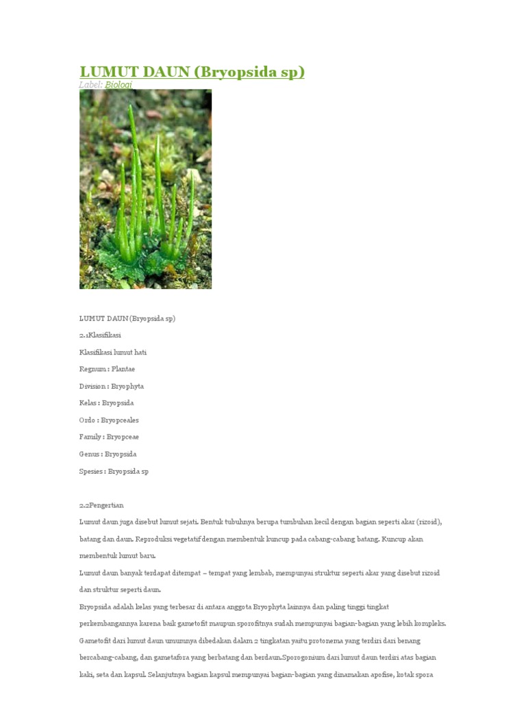 Tumbuhan Lumut (Briophyta) | Bio-Green