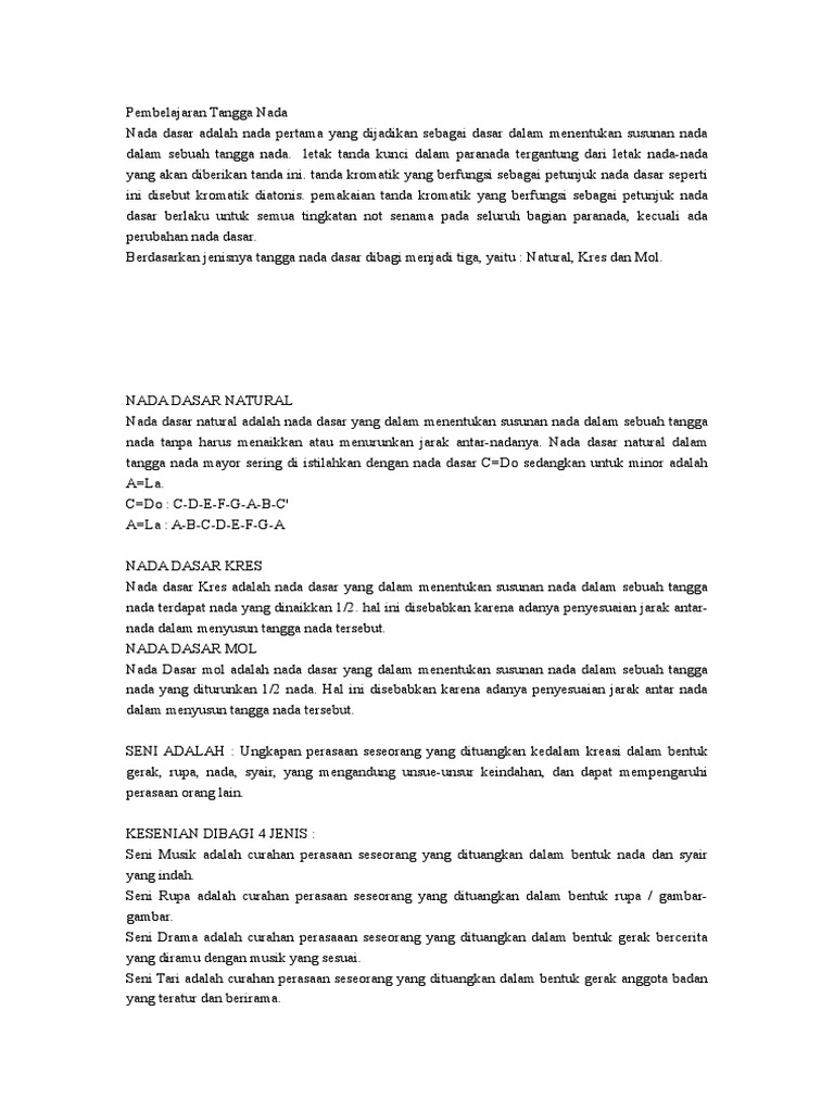 1. Tangga Nada. 1.a Nama-Nama Tingkat Dalam Tangga Nada. Tingkat tangga nada terdiri dari 7 nada, setiap tingkat mempunyai namanama khusus, yaitu : - PDF Free Download