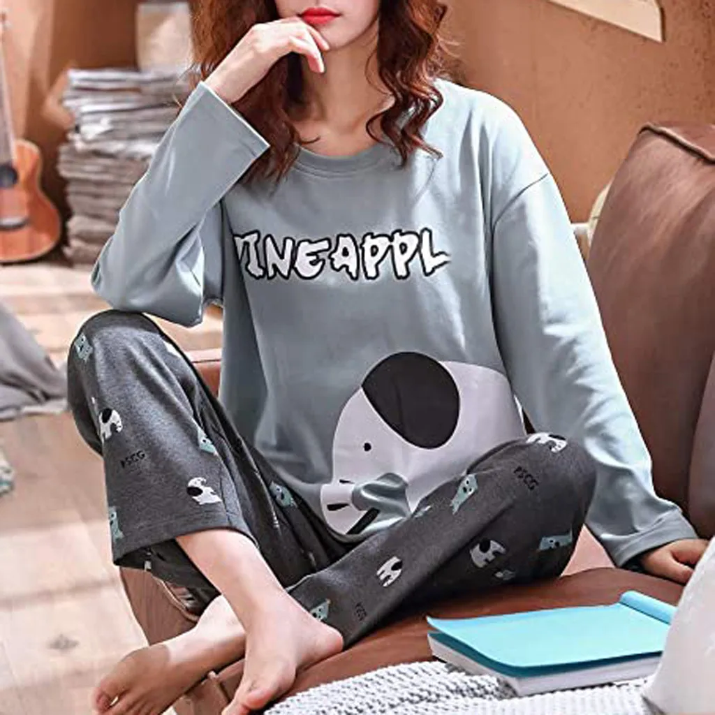 Wanita Gajah Lucu Piyama Set Panjang Lengan Pijamas Kaos & Celana Baju Tidur Rumah Musim Panas Memakai Baju Tidur untuk Wanita|Piyama Set| - AliExpress