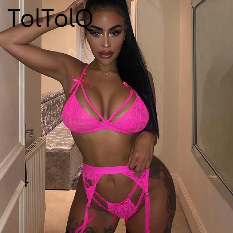 2020 Sexy Bodysuit Wanita Merah Renda Putih Hitam Terbuka Bra Set Thong Memakai Baju Bra dan Celana Dalam 3 Buah Set|Baju| - AliExpress
