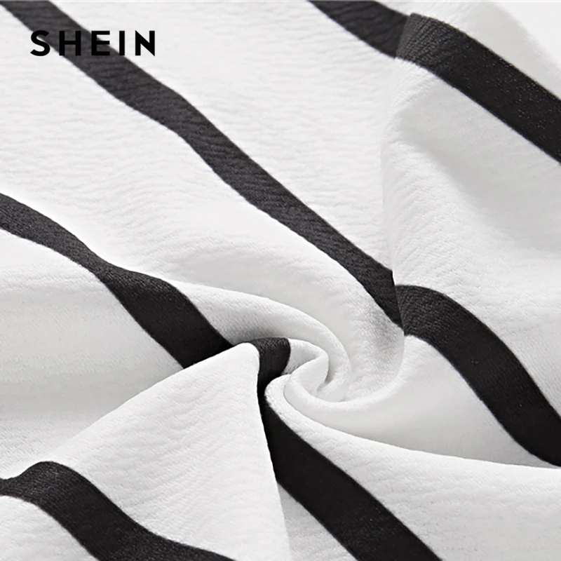 Shein Hitam dan Putih Kasual Serut Pinggang Bergaris Pinggang Tinggi Meruncing Wortel Celana Musim Panas Wanita Akan Keluar Celana|Celana Pendek dan Celana Kapri| - AliExpress