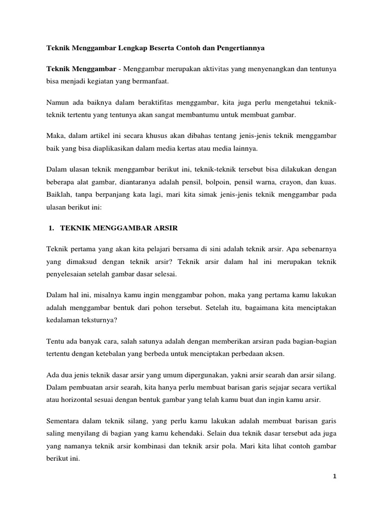 Sebutkan 6 teknik gambar dan jenis model gambar sebagai berikut - Brainly.co.id