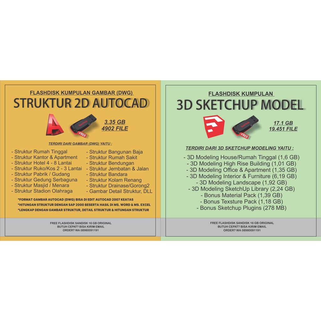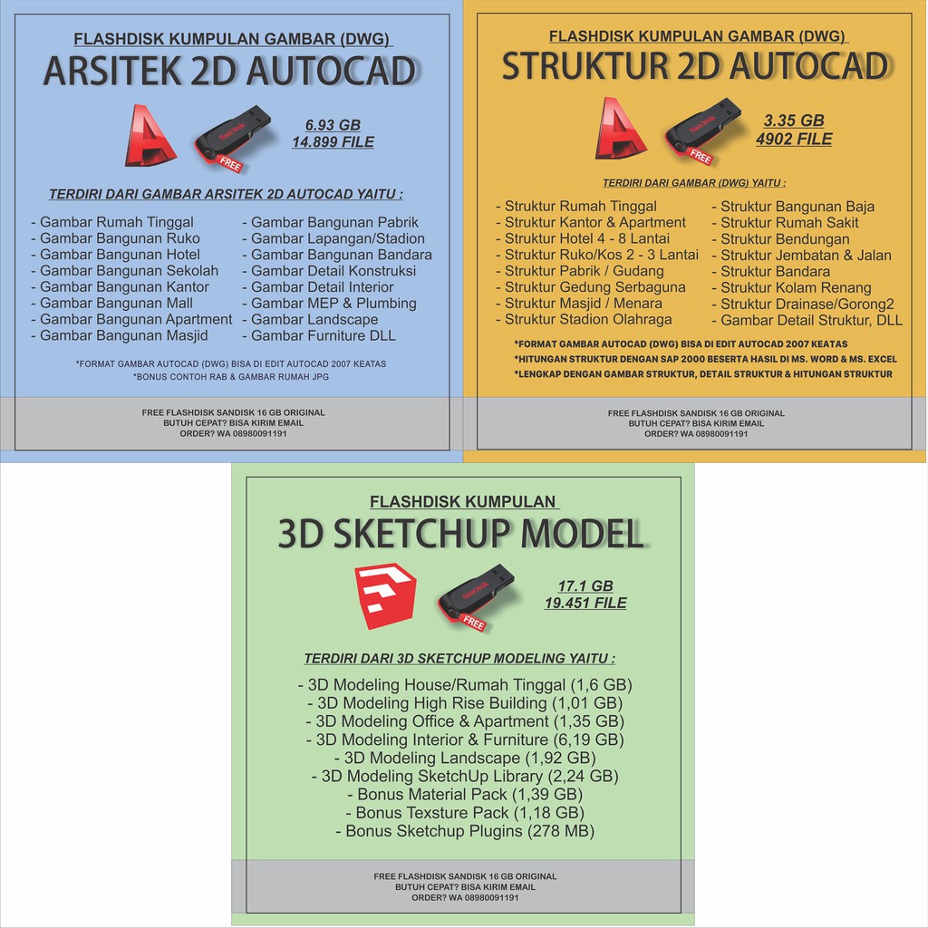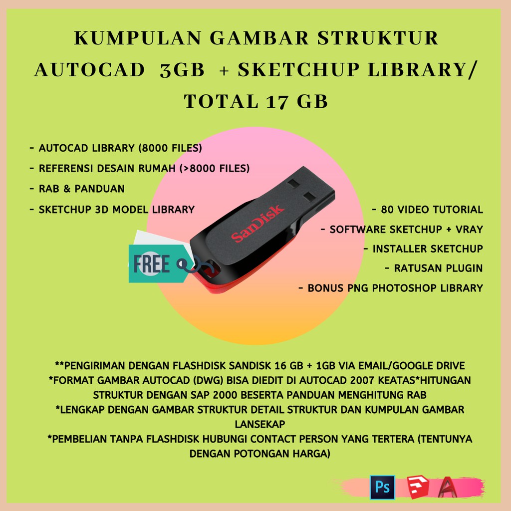 FLASHDISK ISI GAMBAR STRUKTUR AUTOCAD 3GB + SKETCHUP LIBRARY/TOTAL 17 GB | Shopee Indonesia