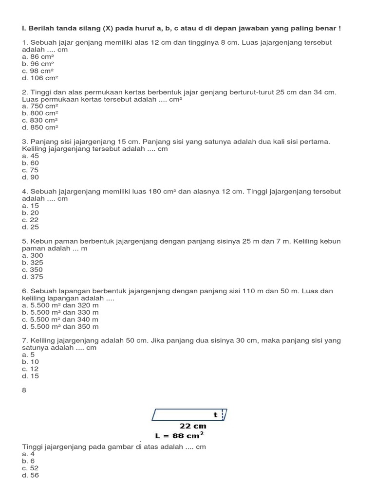 Soal Bangun Datar Jajar Genjang plus Kunci Jawaban ~ Juragan Les