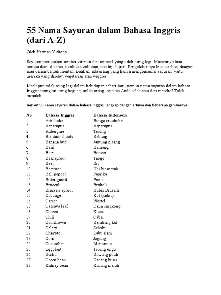Daftar Nama Sayuran dalam Bahasa Inggris dan Indonesia | Ridwan Arifin