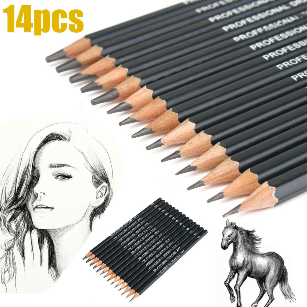 Bbyes 14pcs Set Pensil Gambar Sketsa 12b 10b 8b 7b 6b 5b 4b 3b 2b Hb 2h 4h 6h | Shopee Indonesia