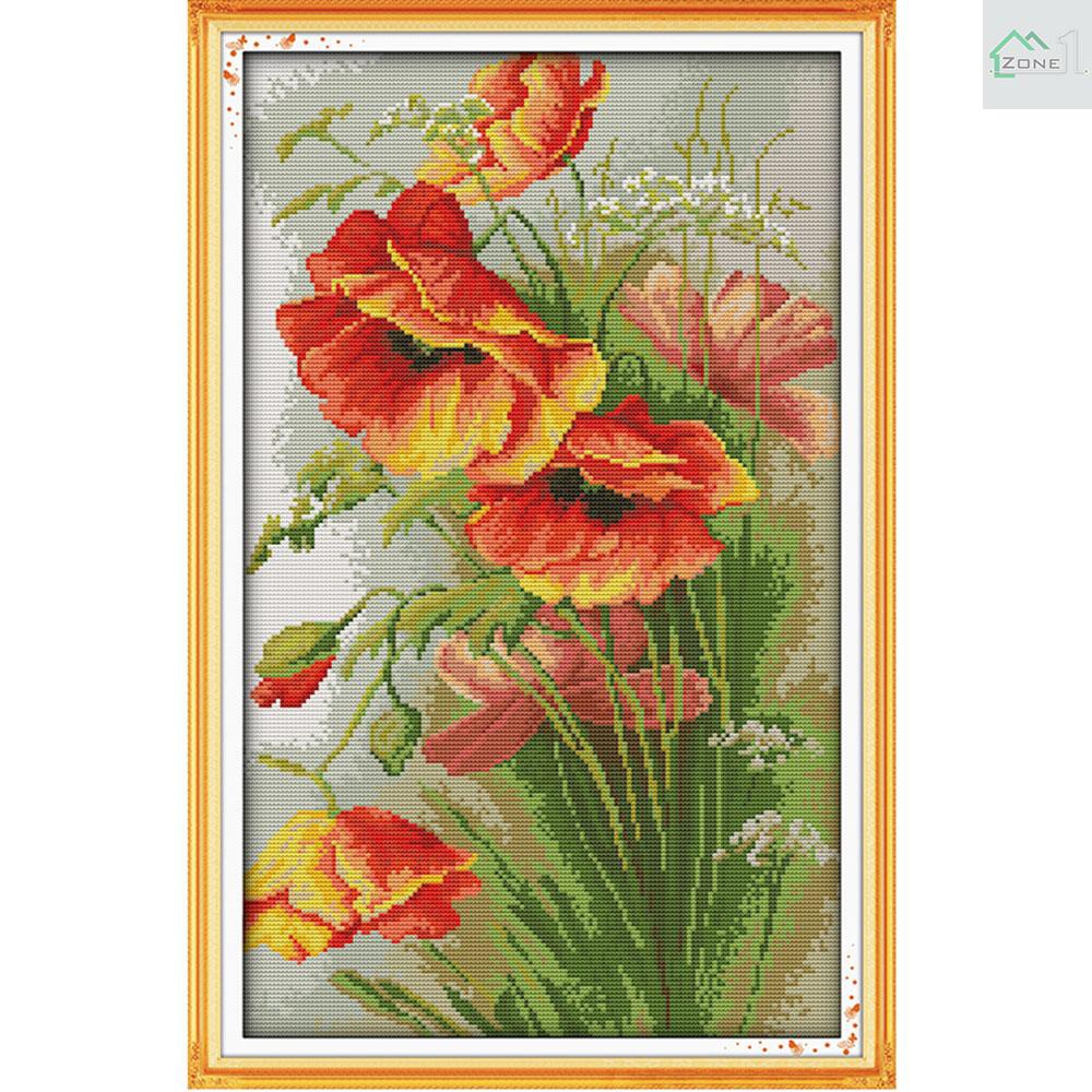 Set Bordir Cross Stitch Handmade Diy 14ct Pola Bunga Poppy Ukuran 35x52cm Untuk Dekorasi Rumah | Shopee Indonesia
