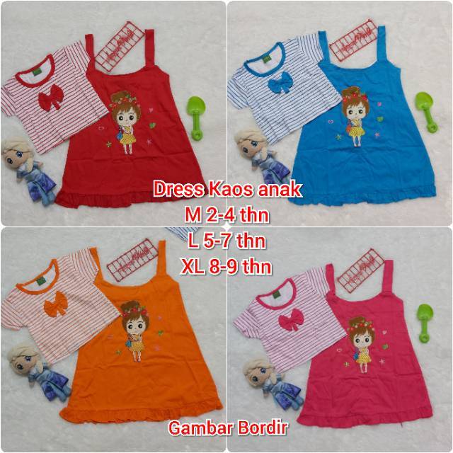 Dress+Kaos anak perempuan//usia 2-9 tahun//Bahan katun Gambar Bordir | Shopee Indonesia