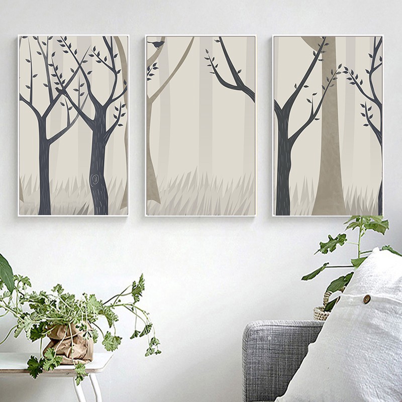 Lukisan kanvas modern, Poster seni birch, Cetak gambar dinding seni, Poster ruang tamu tanpa bingkai | Shopee Indonesia