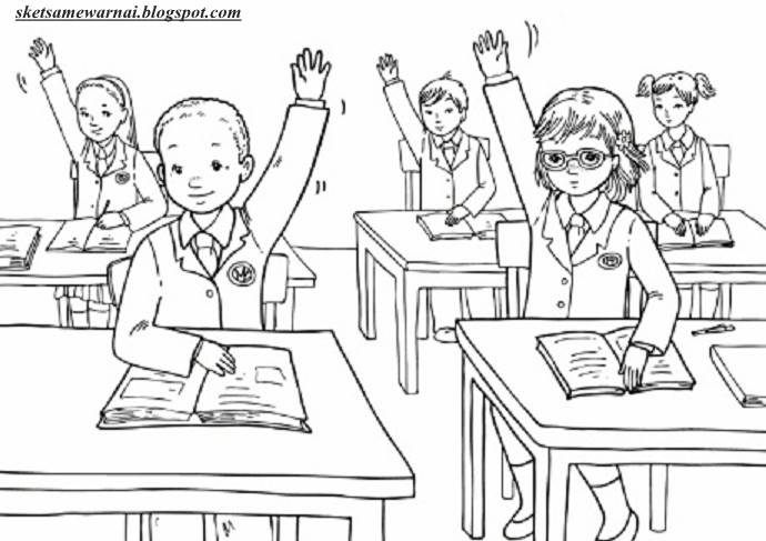 Sketsa Mewarnai Gambar Aktifitas Anak Sekolah - Sketsa Mewarnai