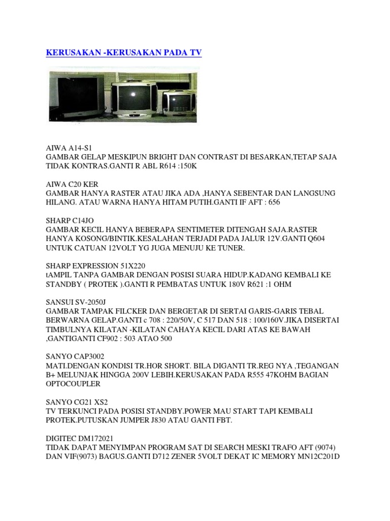 Referensi Memperbaiki 5 Jenis Kerusakan pada Warna TV CRT - ONSOLDER