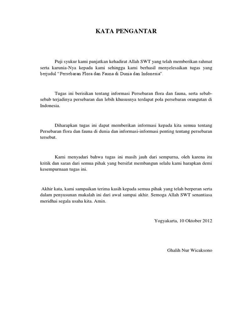 Contoh Kata Pengantar Singkat - Laporan, Makalah, Tugas, Proposal