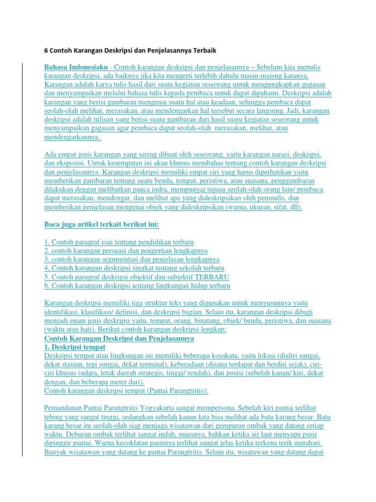 Contoh Paragraf Deskripsi Lengkap | Sarif Karanggan Aza - Academia.edu