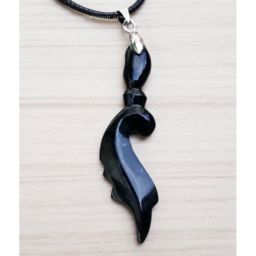 Liontin Giok Hitam Model Kujang Black Jade Bodyglass | Shopee Indonesia