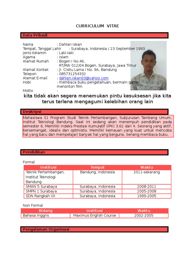 contoh cv | Student Blog UDINUS