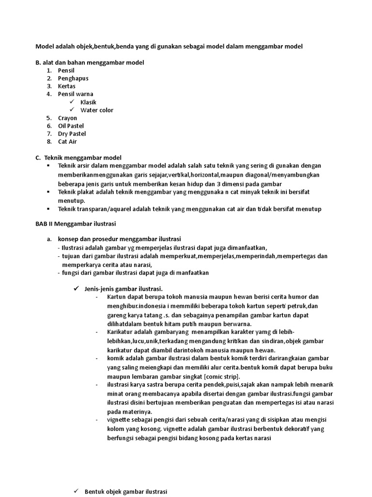 Model adalah objek,bentuk,benda yang di gunakan sebagai model dalam menggambar model B. alat dan bahan menggambar model