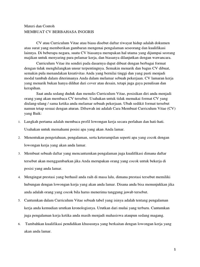 Cara Buat Cv Bahasa Inggris