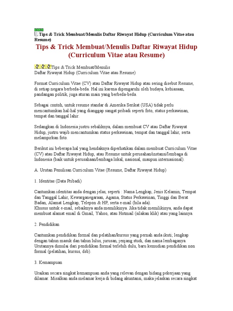 cara membuat daftar riwayat hidup untuk pemula | Riwayat hidup, Hidup, Pendidikan