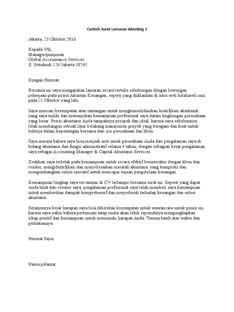 7 Surat Lamaran Kerja Akuntansi Dalam Bahasa Inggris | Akuntansi, Bahasa, Surat
