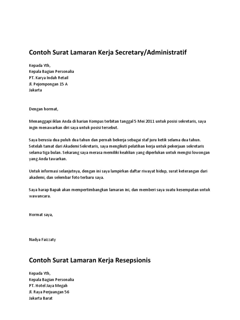 Contoh surat lamaran kerja resepsionis xtmxady 4