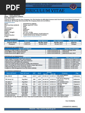 curriculum Vitae Pelaut | Sailor | Merchant Navy