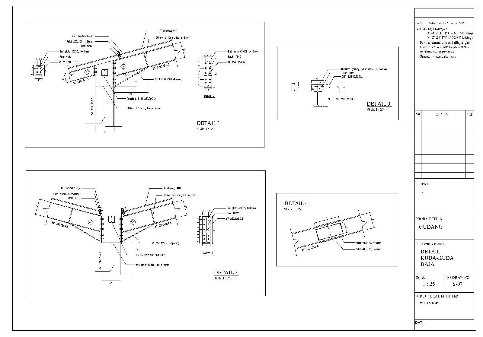 Desain Konstruksi Baja Atap WF Konstruksi Besi Baja di 2020 | Desain, Atap, Autocad