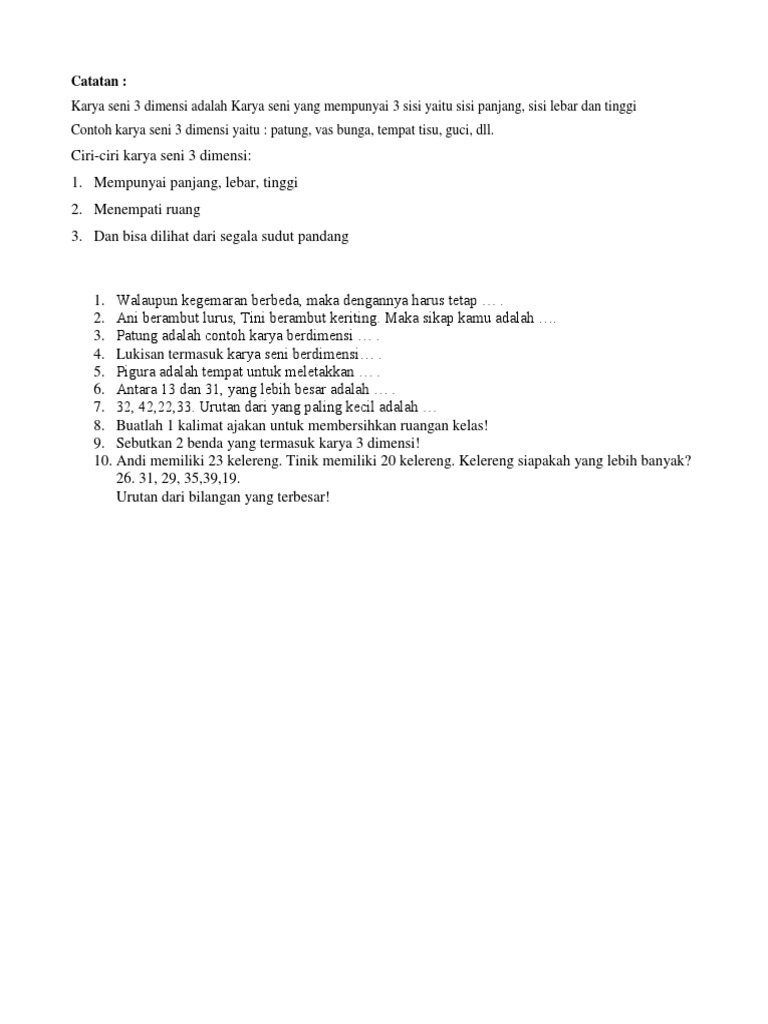 Benda tiga dimensi meliputi benda hias dan benda yang digunakan untuk memenuhi kebutuhan - Brainly.co.id