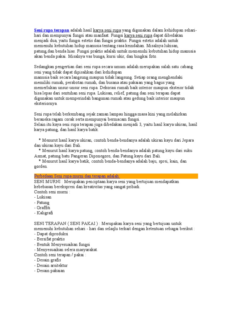 Seni Rupa Terapan Adalah Hasil Karya Seni Rupa Yang Digunakan Dalam Kehidupan Sehari