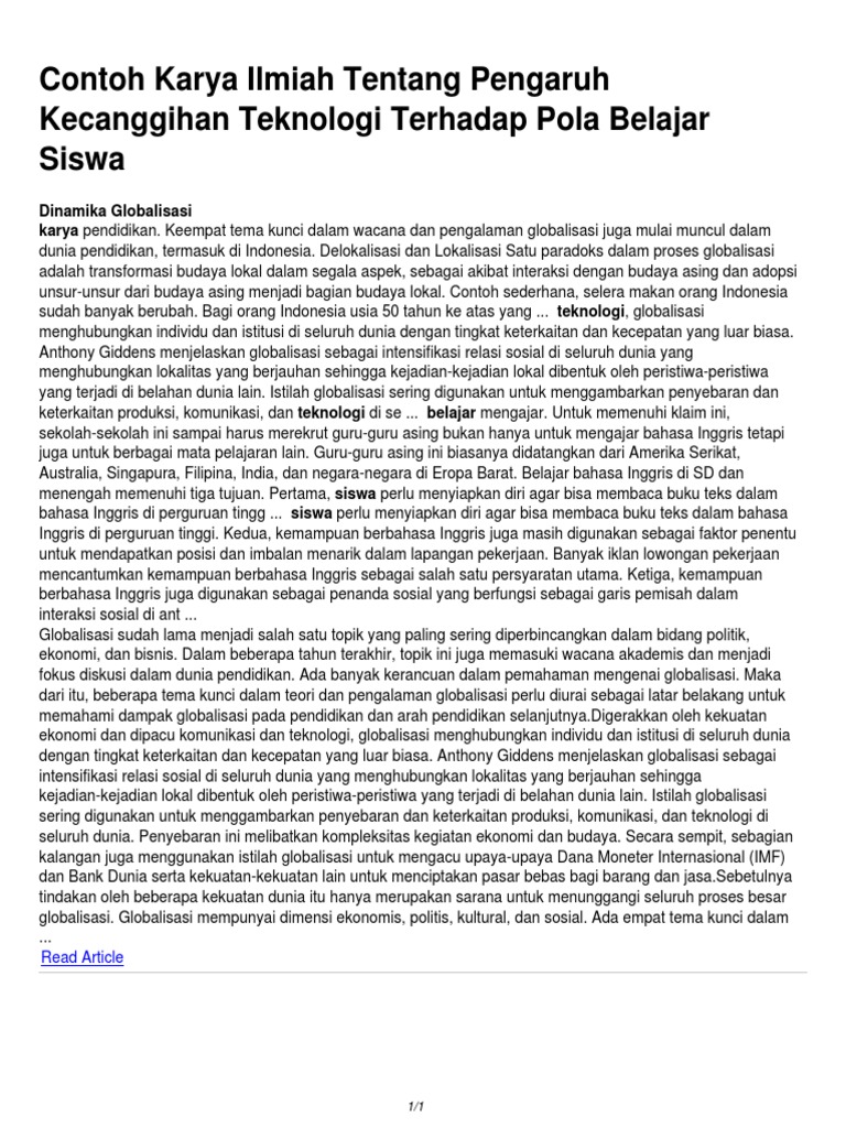 Contoh Karya Ilmiah Dampak Globalisasi Terhadap Pendidikan - Feed News Indonesia