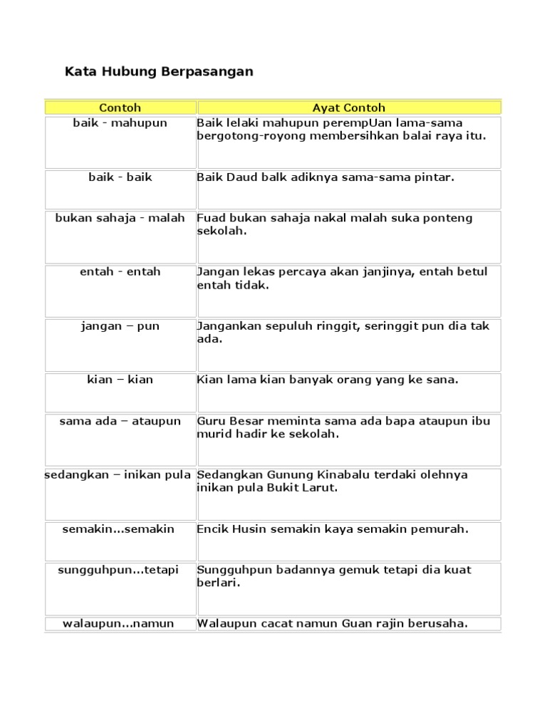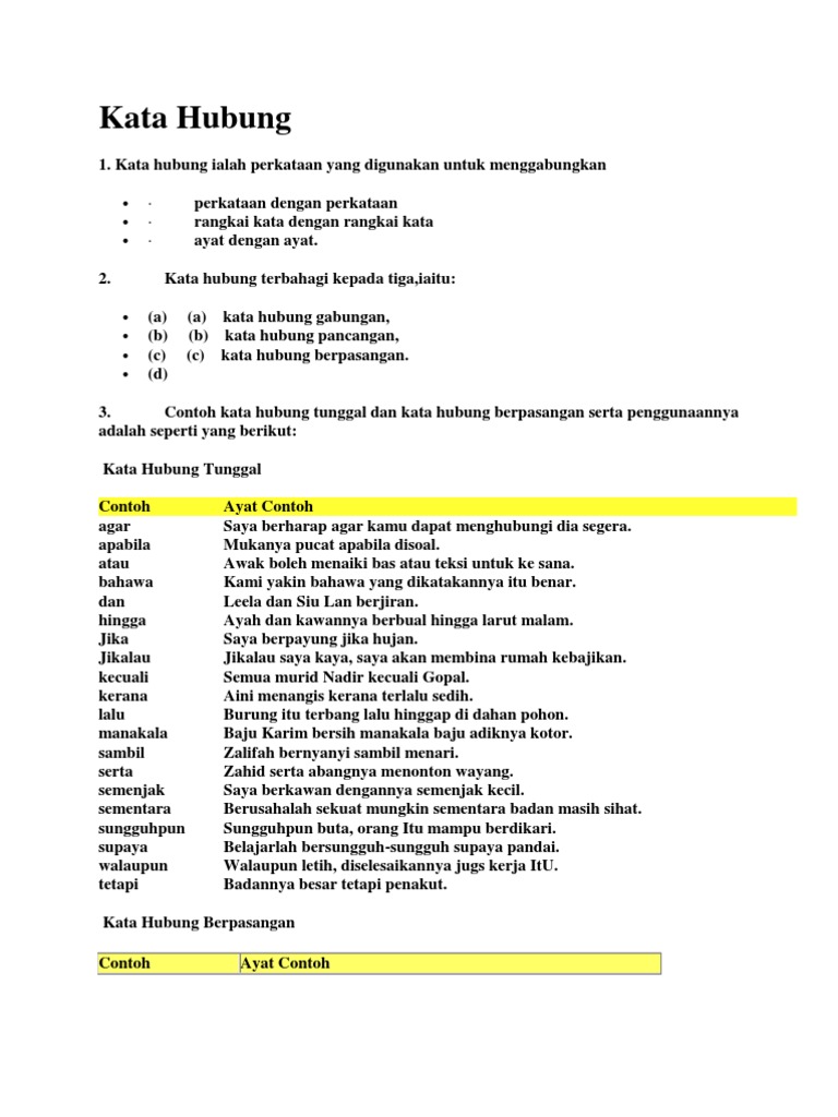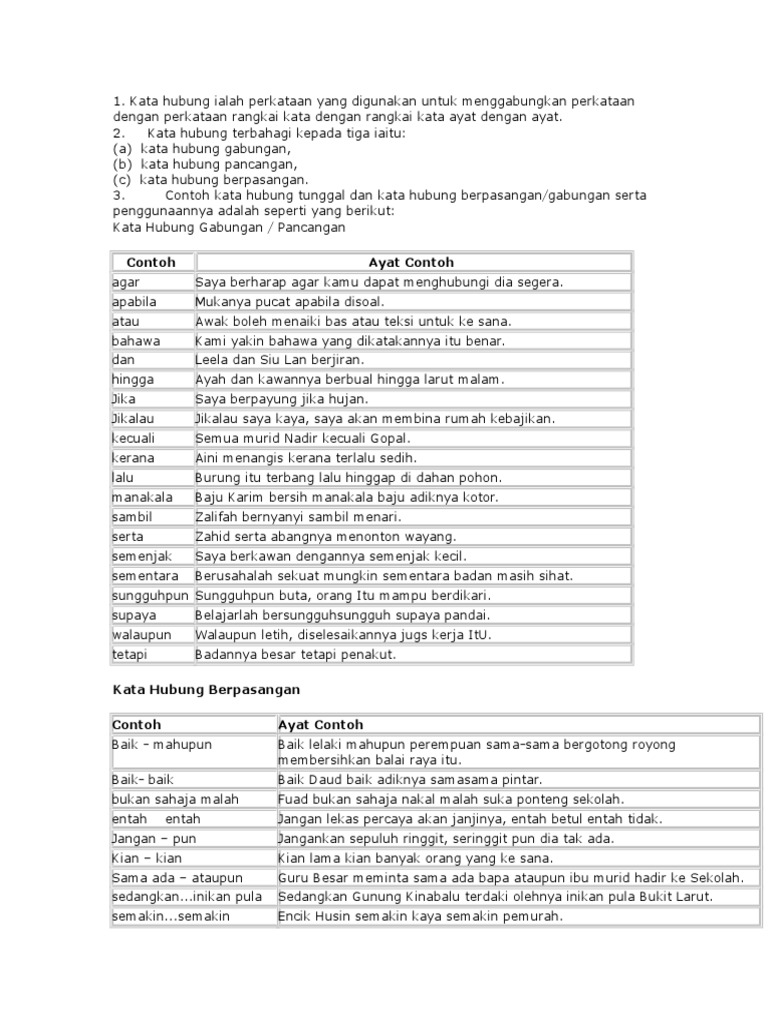 Contoh Kata Hubung