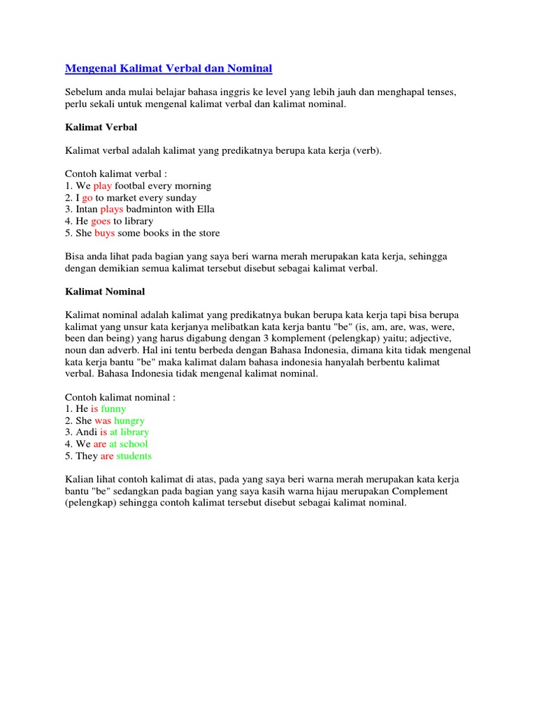 Pengertian & Contoh Kalimat Nominal Dan Verbal Dalam Bahasa Inggris