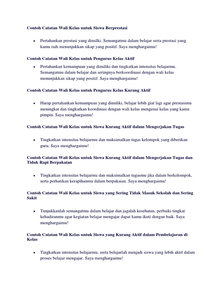 Contoh Kata Kata Catatan Wali Kelas Di Raport K13 | Contoh Soal Dan Materi Pelajaran 7