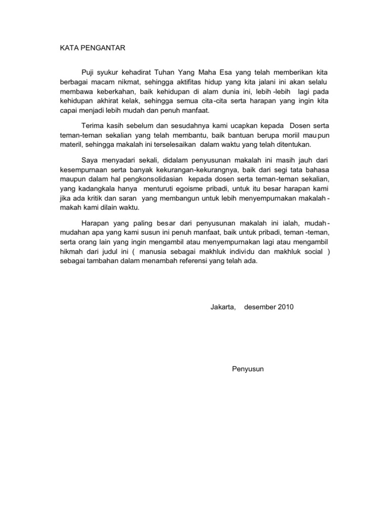 Contoh Kata Pengantar Dalam Makalah Individu