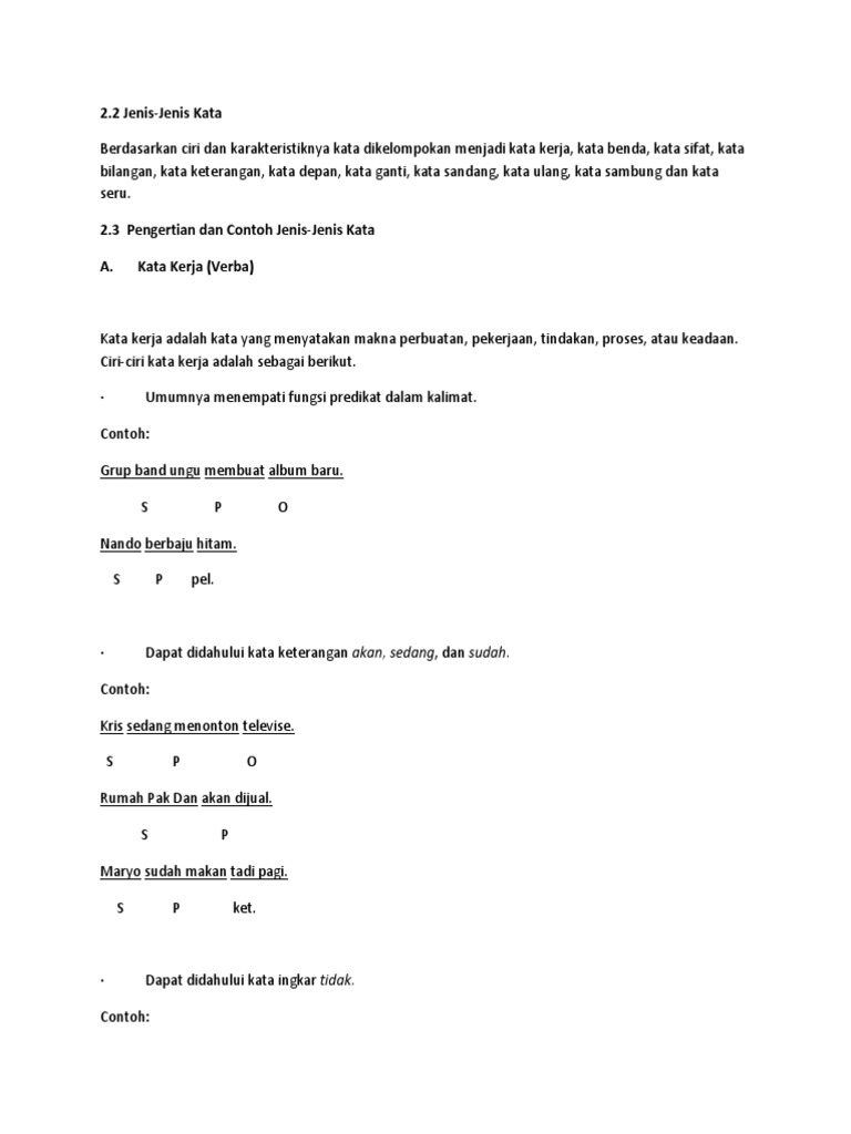 Contoh Kata Sifat Dan Kata Kerja