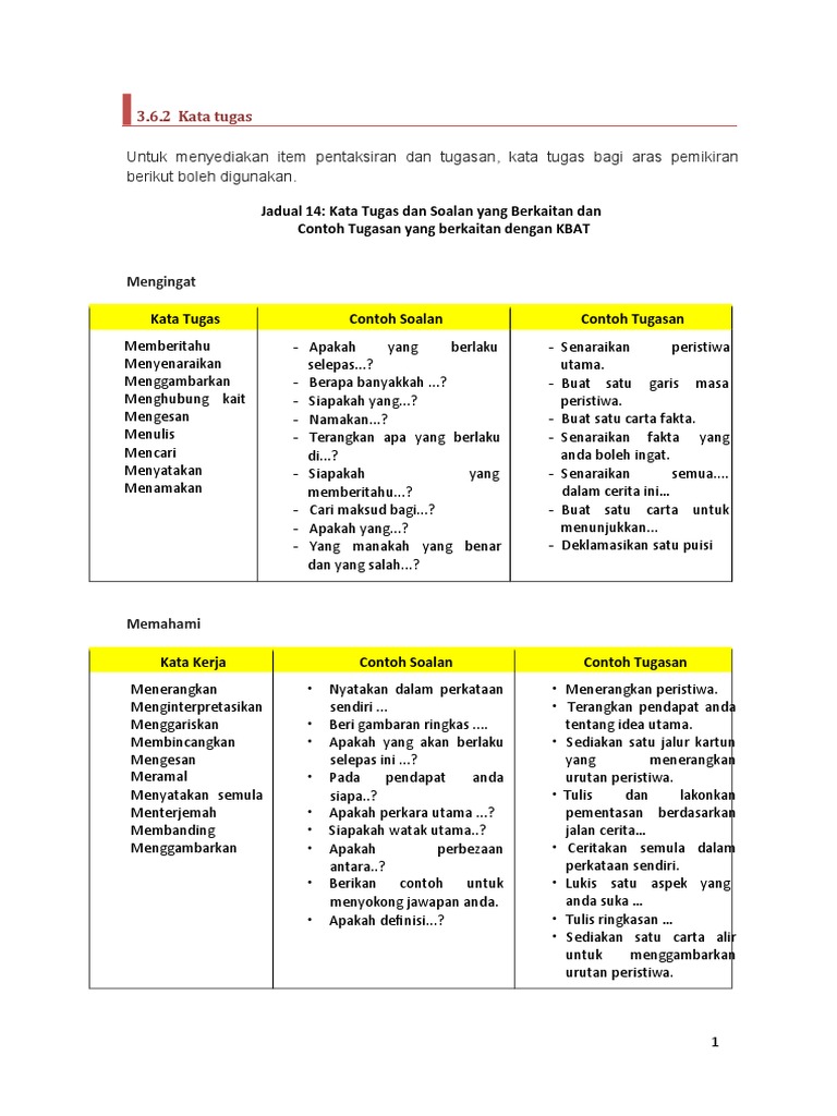 Kata tugas berdasarkan taksonomi bloom