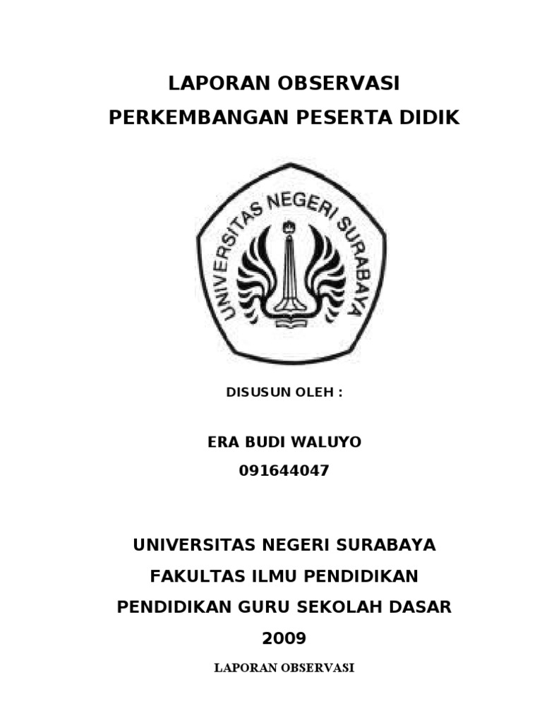 LAPORAN OBSEVASI PERKEMBANGAN SISWA SD