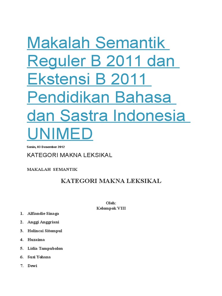 Makalah Semantik Reguler B 2011 Dan Ekstensi B 2011 Pendidikan Bahasa Dan Sastra Indonesia UNIMED