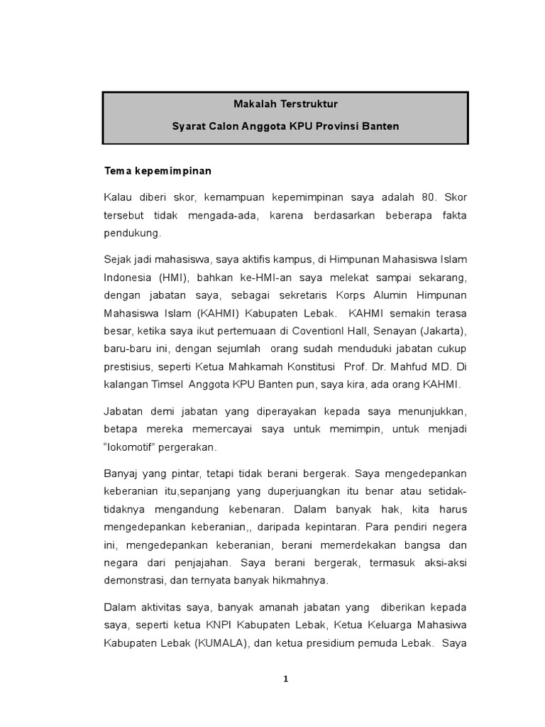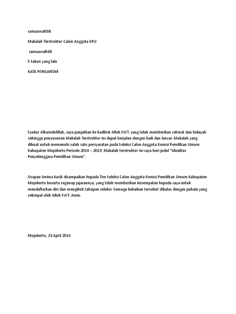 Contoh Makalah Terstruktur Calon Anggota Kpu
