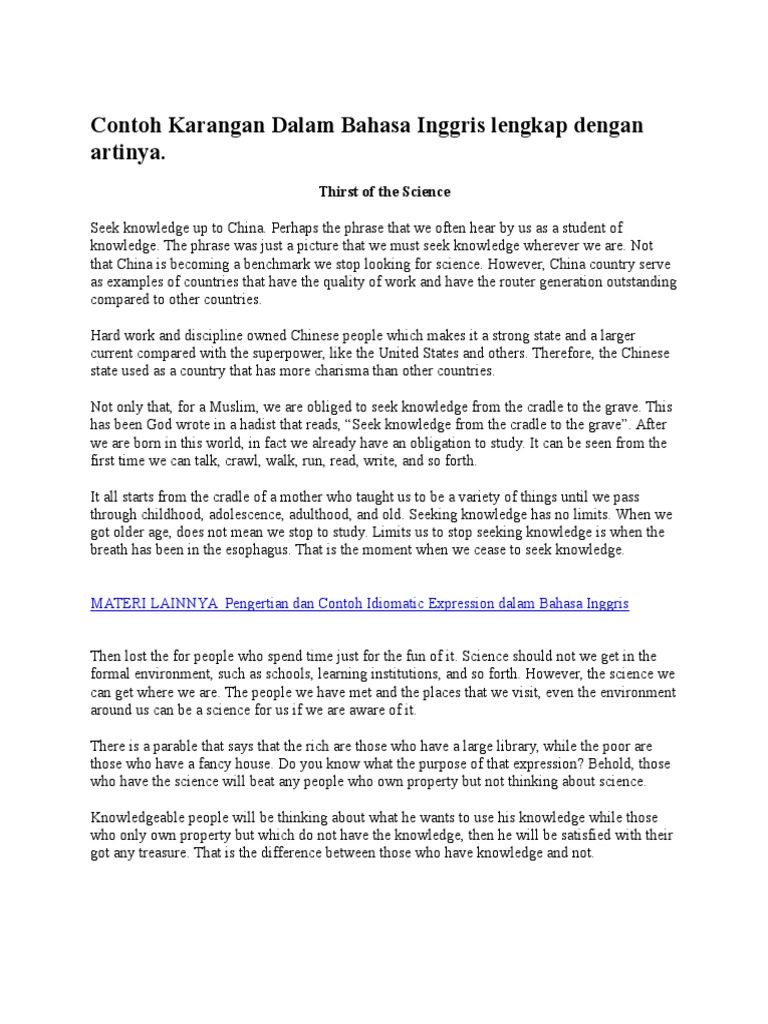 Contoh essay dalam bahasa inggris dan terjemahannya