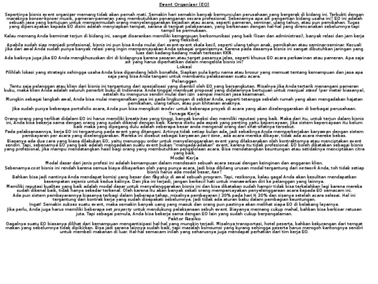 Analisa Usaha Event Organizer, Usaha Event Organizer, Peluang Usaha Event Organizer, Proposal Usaha Event Organizer, Contoh Proposal Usaha Event Organizer | Analisa Usaha