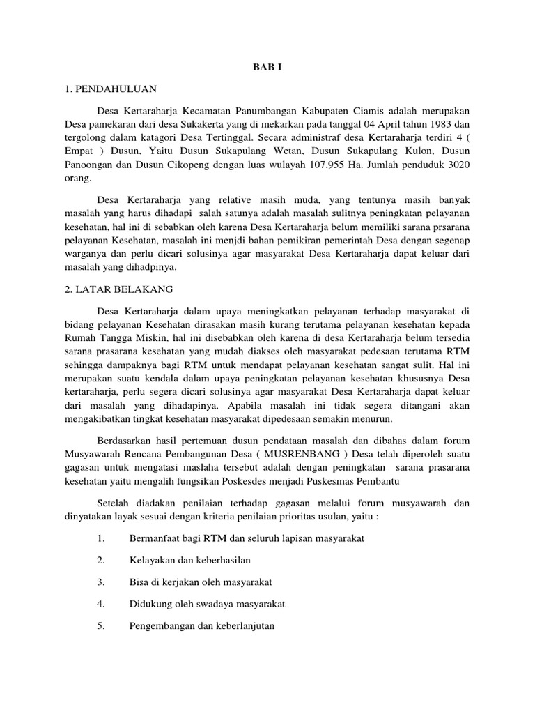 Proposal Alih Fungsi Poskesdes Menjadi Pustu